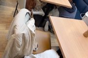1.地震が起きた後、支援員の声掛けと合わせてテーブル下にもぐり身の安全を確保するよう指示しました。揺れが落ち着いた段階で2次災害を防ぐために動線確保のためにドアを開けるように指示をしたと同時に、火の元を止めることを指導しました。